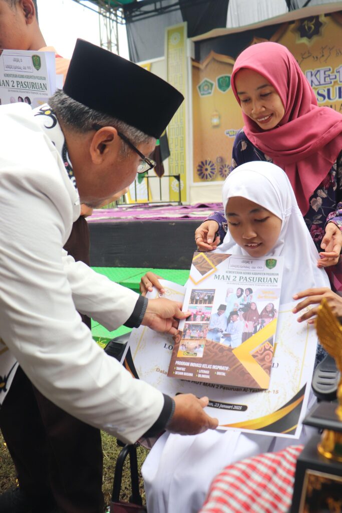 Turut hadir majelis pengasuh Ibu Nyai Zakiyah, Ibu Nyai Chanifah, dan KH. A. Mujib Imron, tokoh agama sekaligus ketua majelis pengasuh Ponpes Terpadu Al Yasini. Dalam sambutannya, KH. Mujib menyampaikan rasa bangga dan apresiasi atas capaian selama ini yang diraih oleh MAN 2 Pasuruan.